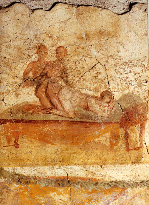 下图为古罗马庞培壁画两男一女: